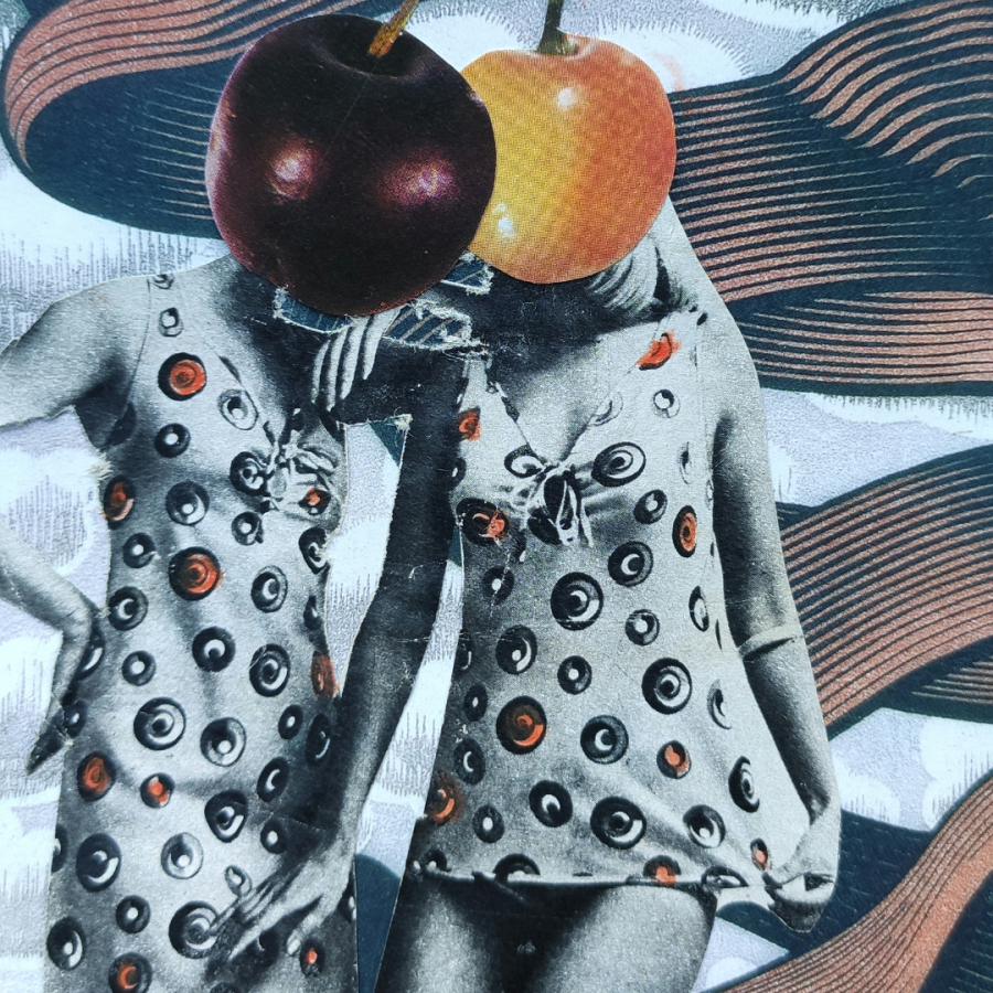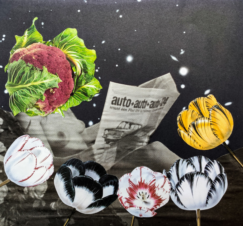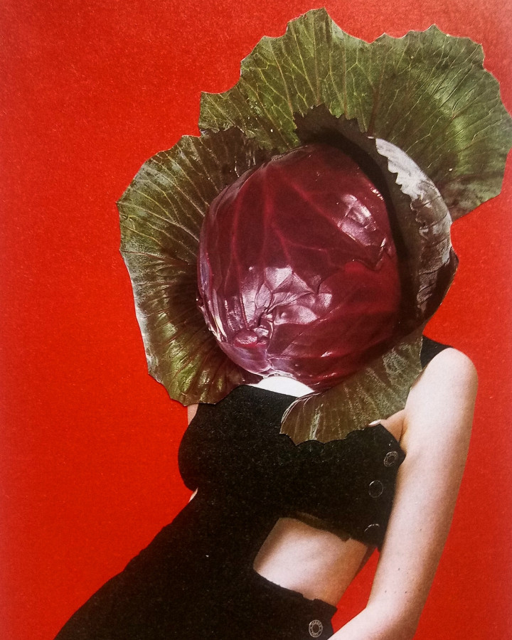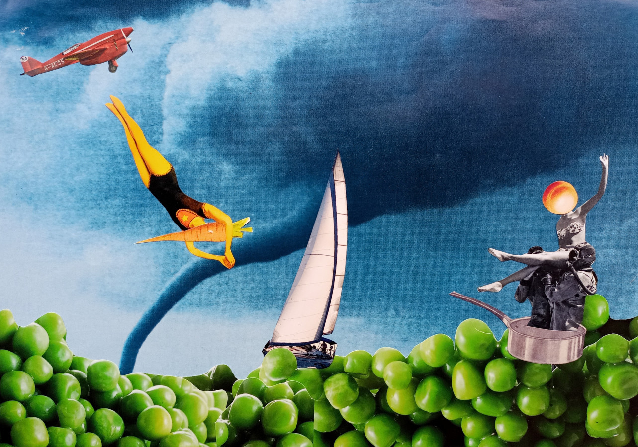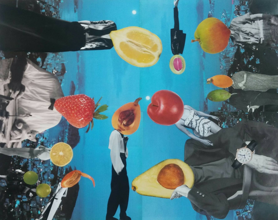 In mijn werk creëer ik analoge collages door beelden uit oude tijdschriften en boeken samen te voegen tot nieuwe werken. Ik vind ze in de kringloop of weggeefkastjes. Vaak plaats ik absurde en surrealistische afbeeldingen samen met plaatjes van fruit en groenten in een context van menselijke taferelen. Zij verbeelden alledaagse gebeurtenissen, maatschappelijke thema's en de wereld om ons heen.