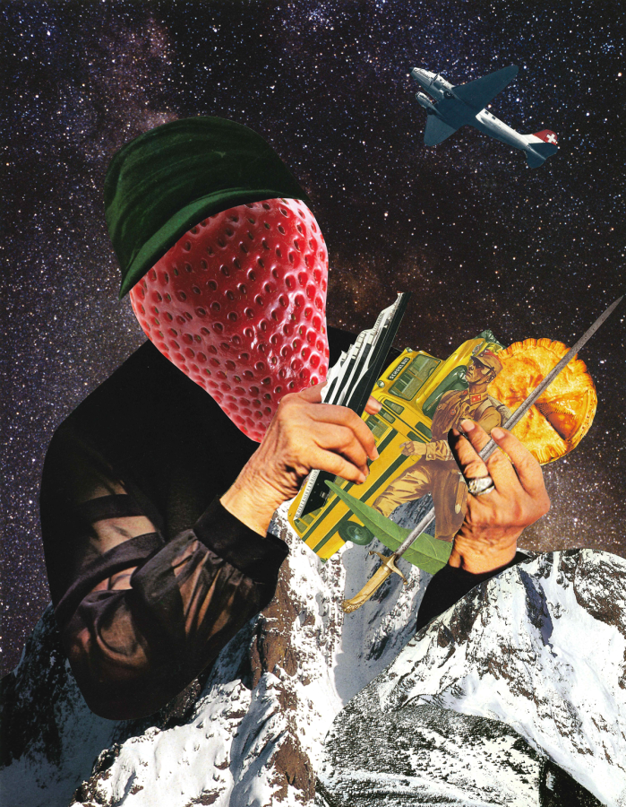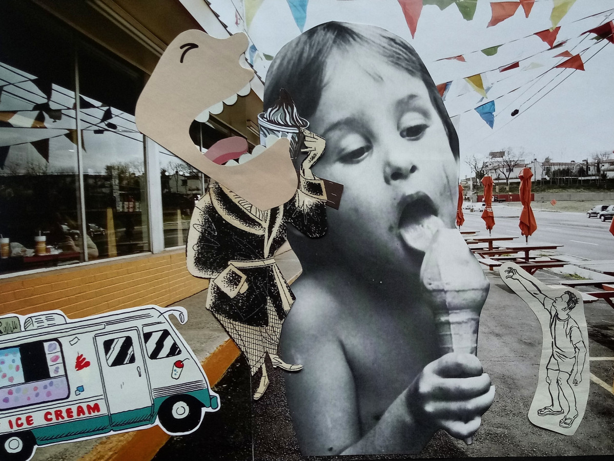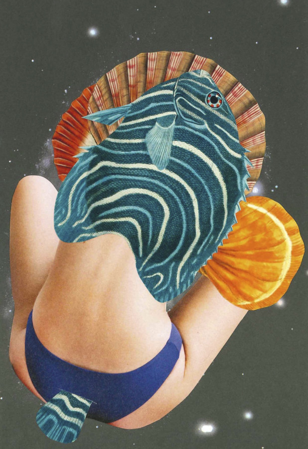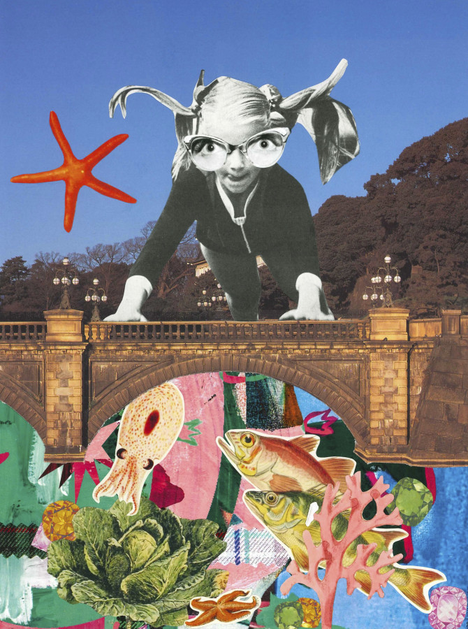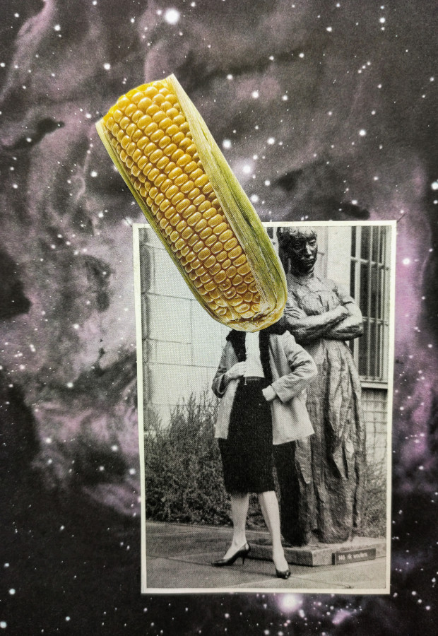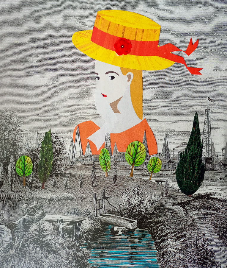 In mijn werk creëer ik analoge collages door beelden uit oude tijdschriften en boeken samen te voegen tot nieuwe werken. Ik vind ze in de kringloop of weggeefkastjes. Vaak plaats ik absurde en surrealistische afbeeldingen samen met plaatjes van fruit en groenten in een context van menselijke taferelen. Zij verbeelden alledaagse gebeurtenissen, maatschappelijke thema's en de wereld om ons heen.