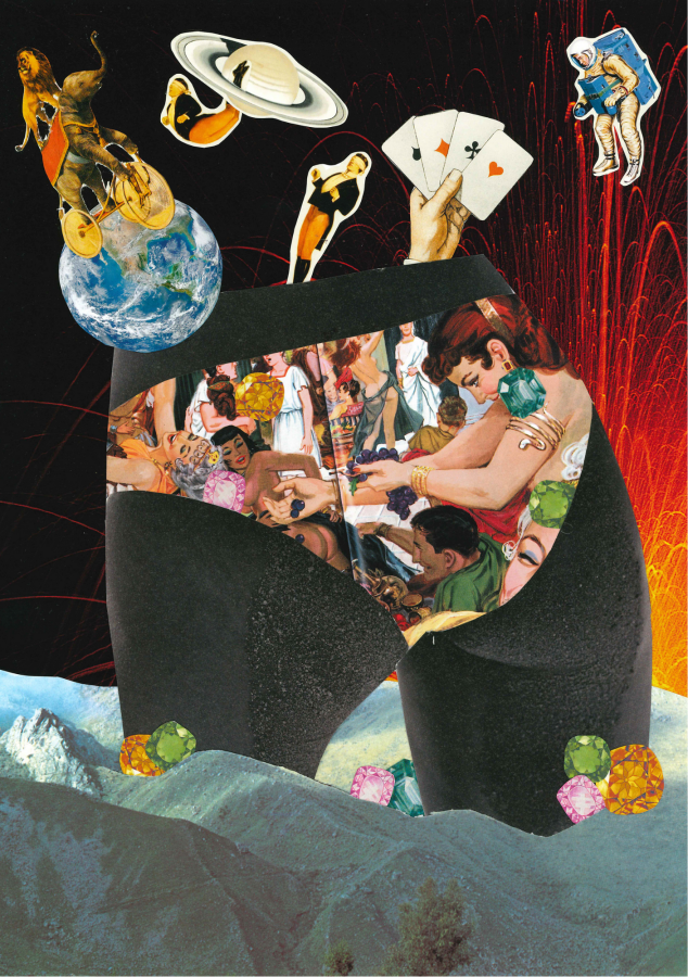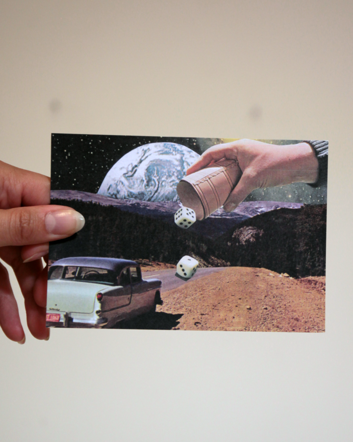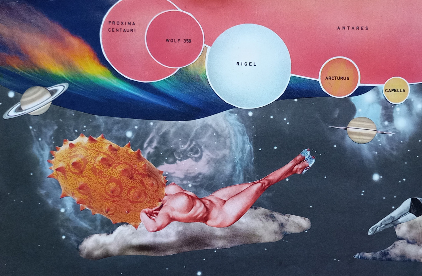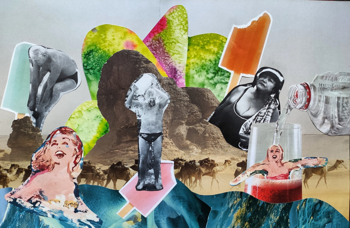 De collages zijn stuk voor stuk uniek en bestaan voor een groot deel uit beelden van poster en tijdschriften die ik verzameld heb in 2022 en 2023 tijdens mijn reizen naar Griekenland, Italië, Spanje en Frankrijk.