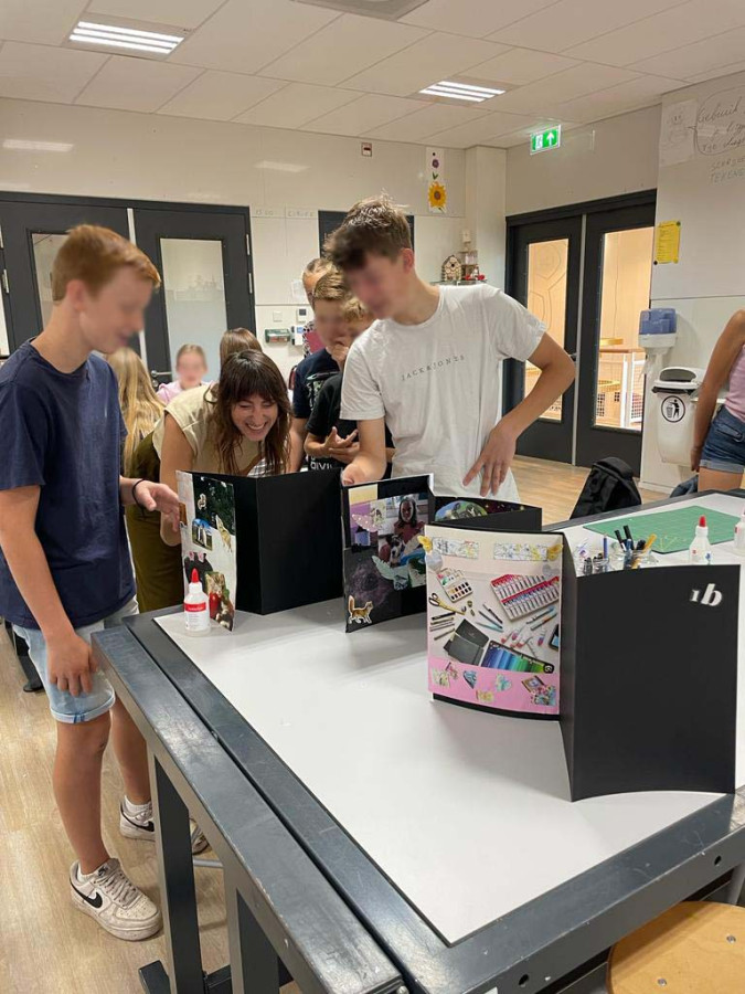 Collage workshop bij eerste jaars van Agnietencollege in Nieuw Leusden, september 2024